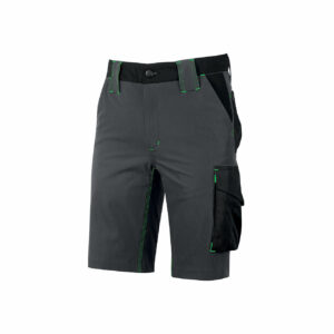 Bermuda in tessuto U-4 (U-Power 4 way stretch) molto comodo, resistente, morbido sulla pelle, idrorepellente, traspirante e asciuga rapidamente. Dotato di due ampie tasche anteriori, elastico in vita con un sistema innovativo di regolazione a scomparsa. Chiusura centrale con zip YKK e bottone gommato antigraffio. Carrè posteriore accentuato per una maggior protezione della parte lombare e nastro reflex su passante tubolare posteriore. Tasca laterale porta utensili, multifunzionale con porta badge a scomparsa, due tasche posteriori di cui una con pattina e una con chiusura di sicurezza a velcro. Due tasche, chiuse con zip in corrispondenza del tascone laterale e della tasca frontale destra. Triple cuciture, Slim Fit.