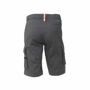Bermuda Cargo in tela di cotone elasticizzato. Due ampie tasche anteriori, una tasca posteriore con velcro. Due ampi tasconi laterali multifunzionali. Triple cuciture, chiusura con zip frontale e bottone antigraffio. Doppio tessuto di rinforzo sulla parte posteriore. Nastro rosso/reflex su passante tubolare posteriore. Vestibilità Slim-Fit. Si abbina al Gilet Wave.