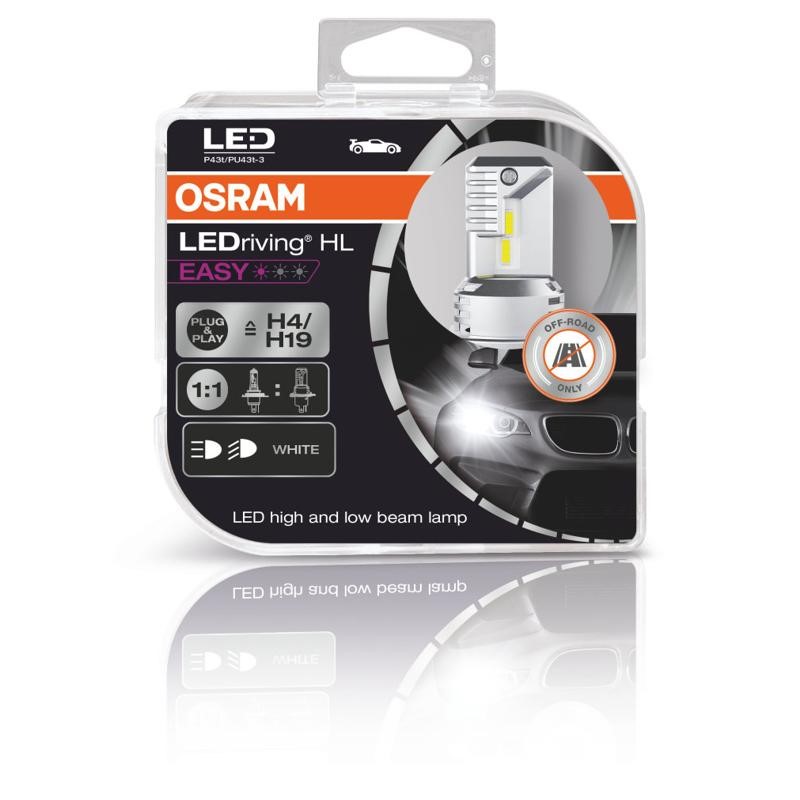 Le lampade OSRAM LEDriving HL EASY per abbaglianti e anabbaglianti sostituiscono le tradizionali lampade alogene, sono compatibili con la tensione a 12 V e hanno una temperatura di colore bianco freddo. Grazie alla più recente tecnologia LED e al design molto compatto, queste lampade consentono un’elevata compatibilità e una facile installazione sulle auto con i rispettivi tipi di lampade alogene. Questi prodotti non sono omologati ECE e non devono essere utilizzati su strade pubbliche in qualsiasi applicazione esterna. L’utilizzo su strade pubbliche comporta il ritiro della carta di circolazione e la perdita della copertura assicurativa. La vendita e l’uso di questi prodotti sono vietati in alcuni paesi. Per maggiori informazioni, contattare il distributore locale.