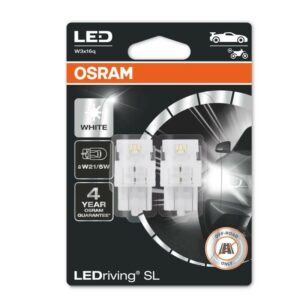 Le lampade di segnalazione LEDriving SL W21W/5W offrono una luce moderna e intensa con una temperatura di colore fino a 6.000 Kelvin. Queste lampade sostitutive sono adatte a tutti gli attacchi per lampade W21W/5W convenzionali. Rispetto alle lampade standard, queste lampade LED retrofit consumano fino all’80% in meno di energia. OSRAM offre una garanzia di 4 anni per queste lampade LEDriving SL. Questi prodotti non sono omologati ECE, dunque non possono circolare sulle strade pubbliche. L’uso non consentito dalla legge comporta il ritiro della carta di circolazione e la perdita della copertura assicurativa. La vendita e l’uso di questi prodotti non sono consentiti in alcuni paesi. Contatta il distributore di zona per verificarne la disponibilità nel tuo paese.