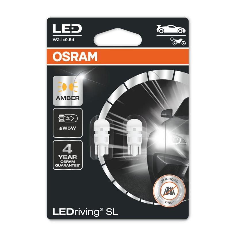 Le lampade di segnalazione LEDriving SL W5W offrono una luce moderna e intensa. Queste lampade sostitutive sono adatte a tutti gli attacchi per lampade W5W convenzionali. Rispetto alle lampade standard, queste lampade LED retrofit consumano fino all’80% in meno di energia. OSRAM offre una garanzia di 4 anni per queste lampade LEDriving SL. Questi prodotti non sono omologati ECE, dunque non possono circolare sulle strade pubbliche. L’uso non consentito dalla legge comporta il ritiro della carta di circolazione e la perdita della copertura assicurativa. La vendita e l’uso di questi prodotti non sono consentiti in alcuni paesi. Contatta il distributore di zona per verificarne la disponibilità nel tuo paese.