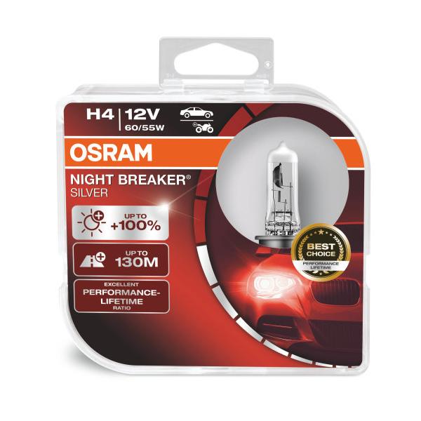 Con la NIGHT BREAKER SILVER, OSRAM offre una lampada automotive alogena della linea Performance con un’ottima durata. OSRAM NIGHT BREAKER SILVER genera fino al 100% in più di luminosità rispetto ai requisiti minimi ECE e un fascio di luce fino a 130 metri. Questo permette di distinguere segnali, ostacoli e pericoli prima e il guidatore ha più tempo per reagire. Queste lampade automotive inoltre hanno un eccellente rapporto prezzo-prestazioni e un design moderno con una raffinata calotta argentata (H4/H7/H11). La scelta perfetta per i guidatori che cercano prestazioni e durata.