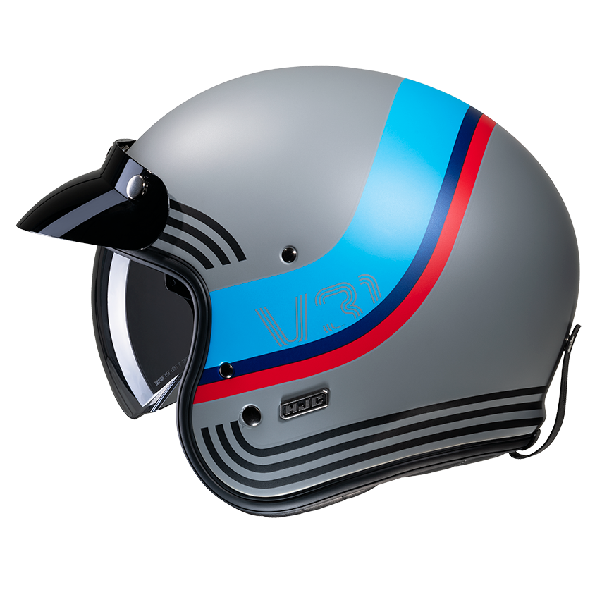 Il V31 è un casco aperto in stile retrò composto da una calotta avanzata in fibra di vetro composita per offrire un casco leggero. Questo casco a ¾ è dotato di uno schermo parasole integrato a 3 posizioni con rivestimento antigraffio che si apre facilmente per scorrere verso l’alto o verso il basso. Per esaltare la sensazione vintage, il V30 è dotato di interni in pelle e camoscio e di un supporto per il cinturino degli occhiali. Le imbottiture per le orecchie sono rimovibili e lavabili e le tasche per gli altoparlanti sono predisposte per la comunicazione Bluetooth.